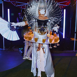 Where glamour meets service. Dressed in stunning themed costumes and wearing fully stocked champagne skirt displays, our talents move gracefully through the crowd, serving drinks with charm and style. Perfect for luxury events, corporate galas, weddings, and VIP parties — it’s not just a drink service, it’s a photo-worthy moment.
